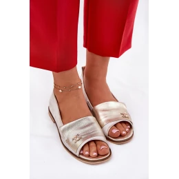 Kožené Elegantní Baletky S Odkrytými Prsty Zazoo 1865 Zlatý Ošoupaný
