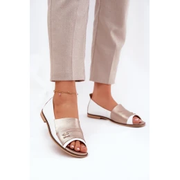 Kožené Elegantní Baletky S Otevřenými Prsty Bílá-Zlatá Zazoo 1865
