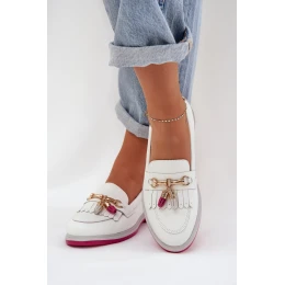 Kožené Elegantní Mokasíny Na Plochém Podpatku S.Barski LR51-768A Bílé