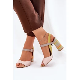 Kožené elegantní sandály na podpatku Laura Messi 2136 Multikolor