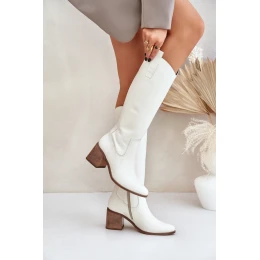 Kožené Holinky Před Kolena Na Podpatku Bílé Zazoo 3675