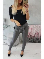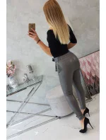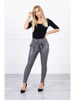 Představujeme vám módní kalhoty. Kalhoty se vpředu zavazují páskem. Široká gumička všitá do zadní části. Kalhoty mají kapsy. Kalhoty ideální do práce i na běžné nošení. Kalhoty jsou vyrobeny z vysoce kvalitní umělé kůže. Dostupné velikosti: S, M, L.
