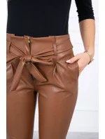 Představujeme vám módní kalhoty. Kalhoty se vpředu zavazují páskem. Široká gumička všitá do zadní části. Kalhoty mají kapsy. Kalhoty ideální do práce i na běžné nošení. Kalhoty jsou vyrobeny z vysoce kvalitní umělé kůže. Dostupné velikosti: S, M, L.