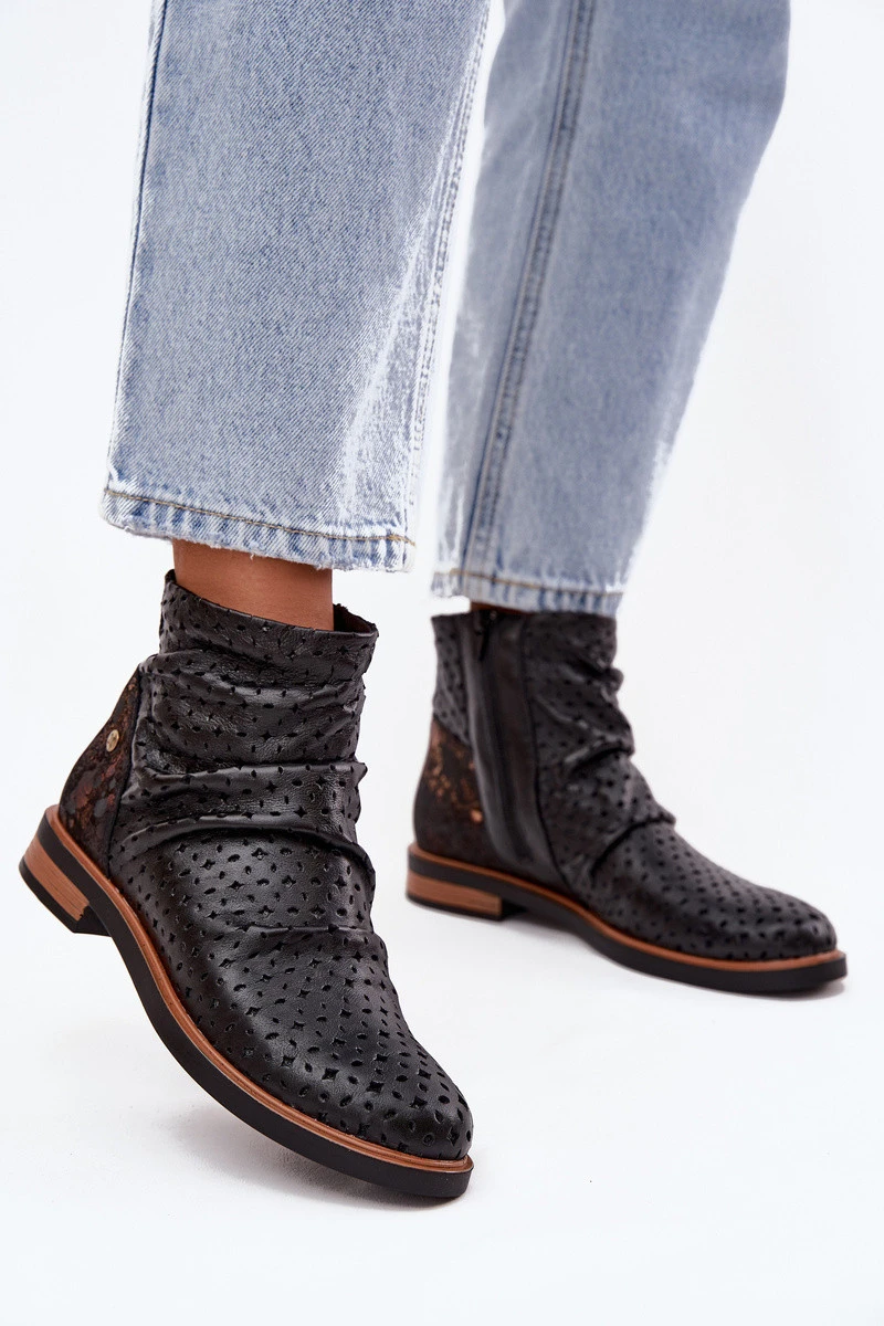 Kožené kotníkové boty s perforovaným vzorem Maciejka 05922-01 Černé