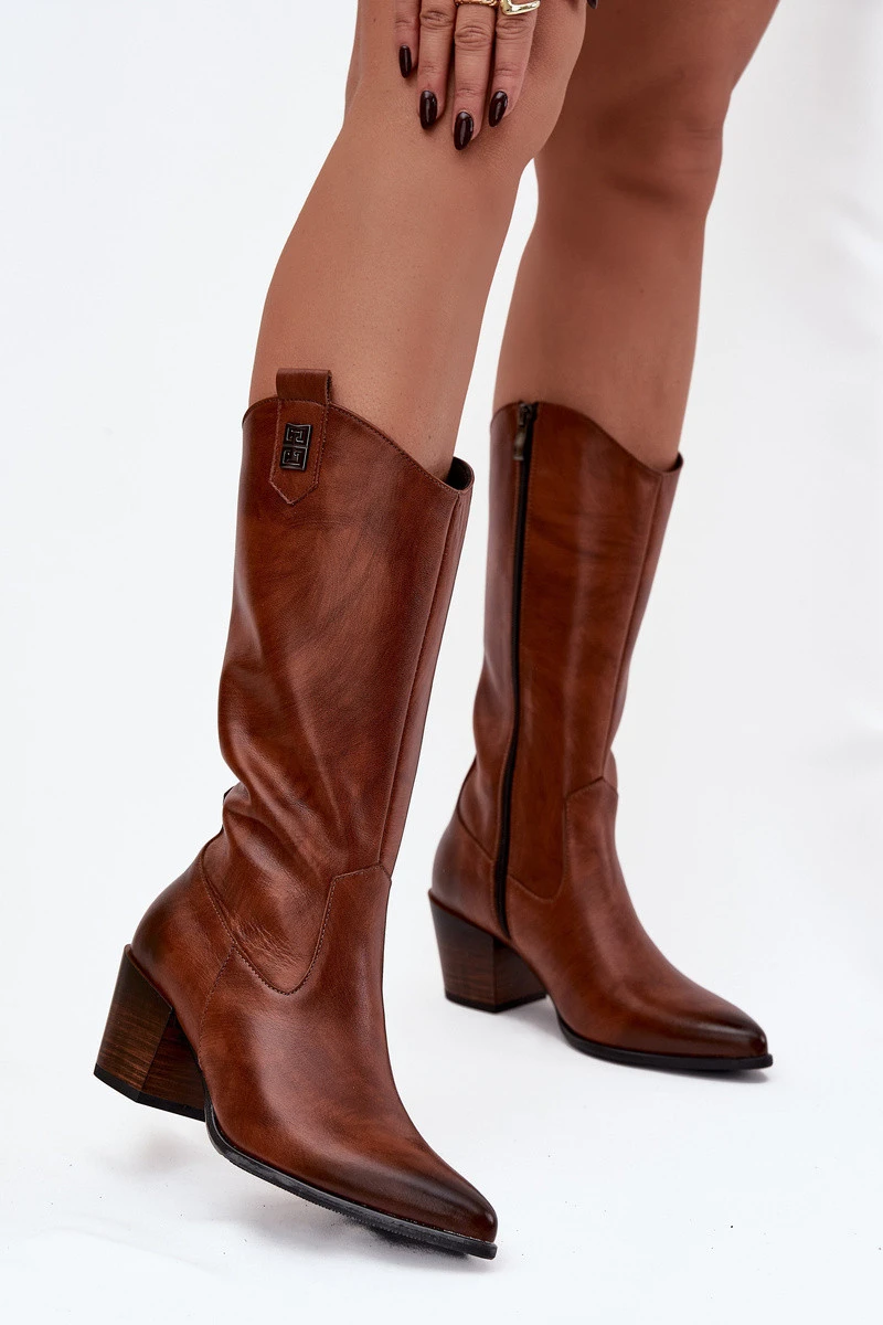 Kožené Kovábojky Na Podpatku Vyhřívané Zazoo 70155 Hnědé