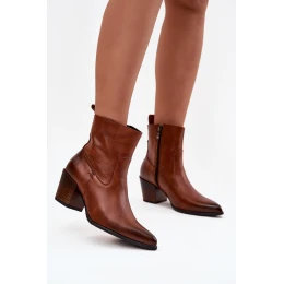 Dámské kožené boty ve stylu kovbojky jsou stylovou obuví, která kombinuje pohodlí s charakteristickým západním akcentem. Vyrobené z vysoce kvalitní přírodní kůže, ohromují svou odolností a estetikou, přičemž zároveň zajišťují komfort při každodenním nošení. Model se zapíná na zip, což usnadňuje oblékání a svlékání. Špičaté nosy a zkrácené podpatky ve tvaru sloupku dodávají celkovému vzhledu výjimečný charakter, zdůrazňují štíhlou linii nohy. Vyhřívané vnitřní prostory zajišťují teplo v chladnějších dnech, což činí tyto boty ideální na podzim a zimu. Je to univerzální model, který se skvěle hodí jak k džínům a kožené bundě, tak i k lehkým šatům, vnášejícím do stylizace nádech ženské svobody a moderní elegance. Při výběru velikosti prosíme podle tabulky velikostí. Při výběru velikosti se řiďte tabulkou velikostí.