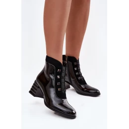 Kožené lakované dámské boty na podpatku D&A MR52-144 Černé