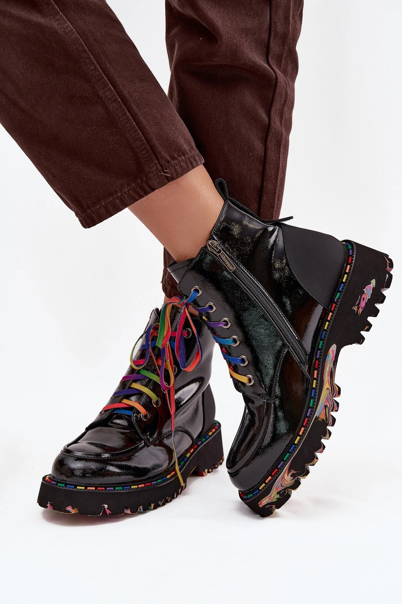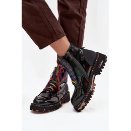 Kožené lakované dámské kotníkové boty Artiker 57C0064 Černé