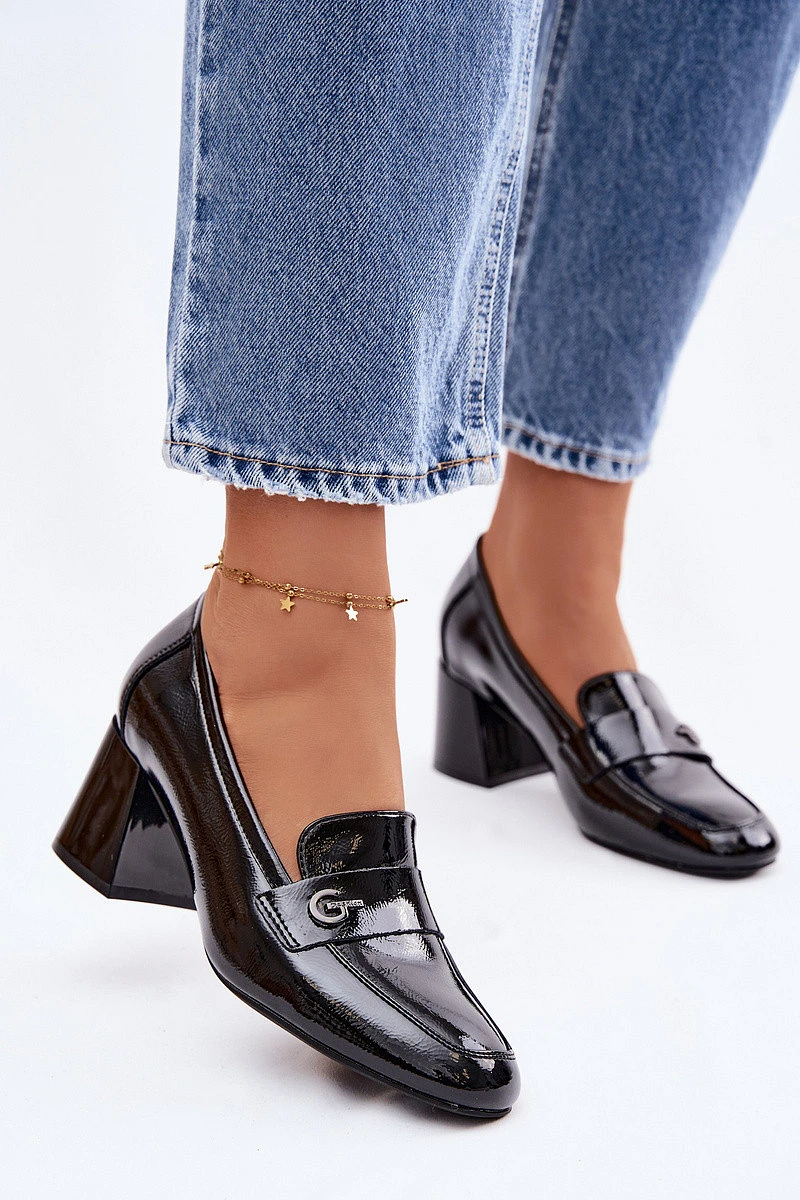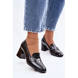 Kožené Lakované Dámské Lodičky na Podpatku Vinceza 18119 Černé