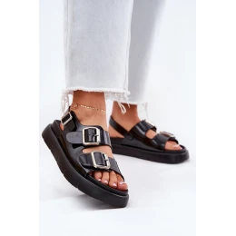 Kožené Lakované Dámské Sandály S Přezkami Big Star RR274662 Černé