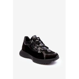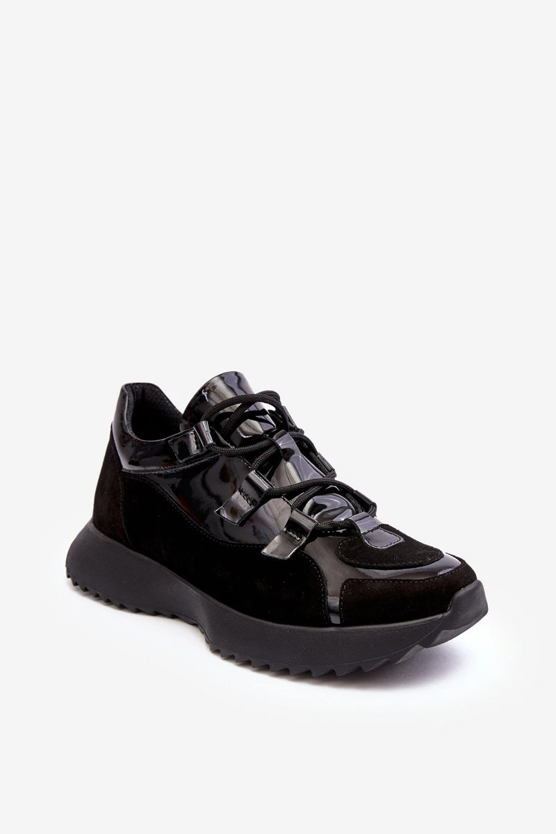 Kožené lakované dámské sportovní boty M01/2 Zazoo Černé