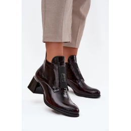 Kožené lakované kotníkové boty na klínku s ozdobným detailem zateplené Zazoo 60560 bordó