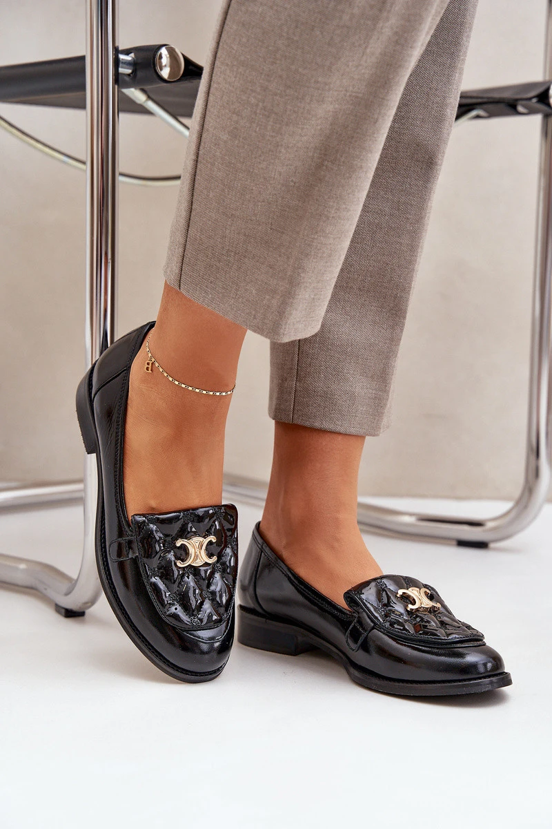 Kožené Lakované Mokasíny Se Zlatou Dekorací Laura 2927 Černé