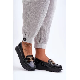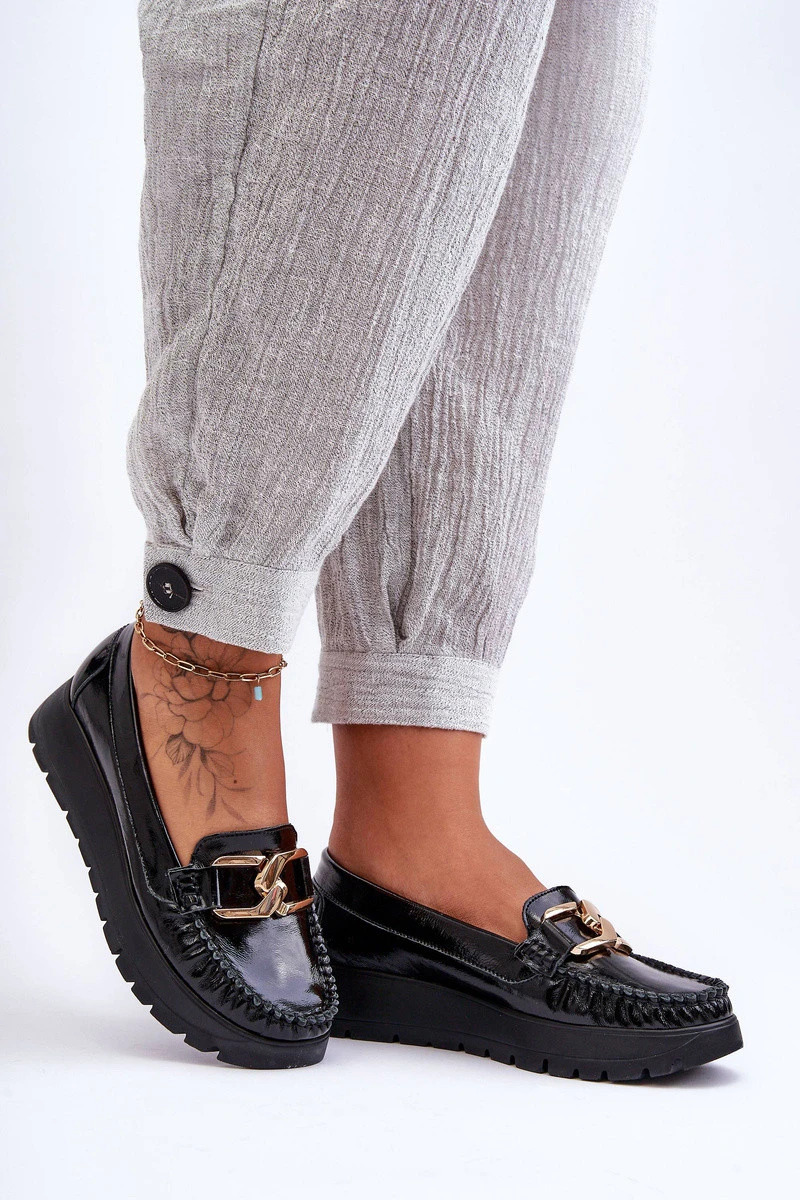 Kožené Mokasíny Na Platformě S Ozdobou Černá Desmond