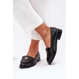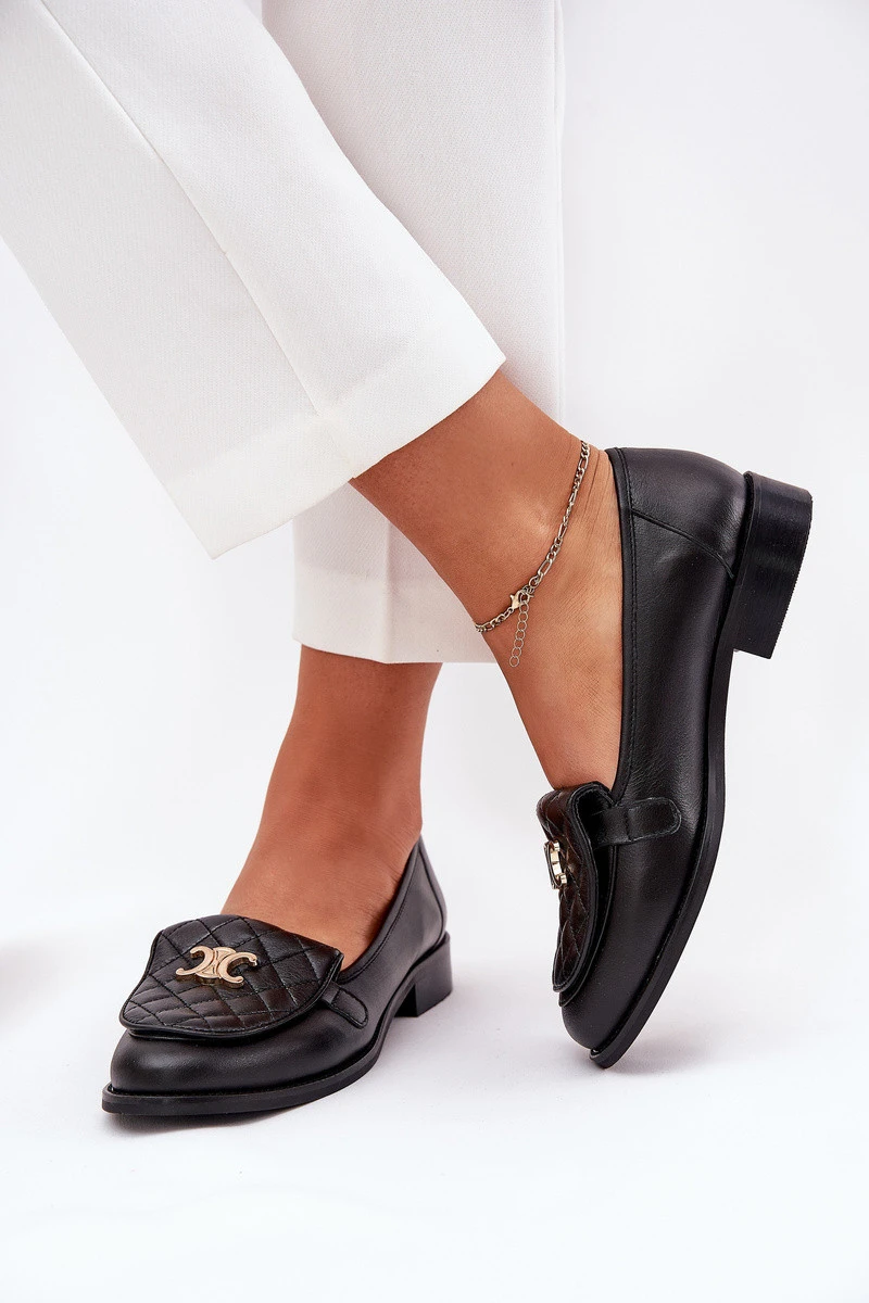 Kožené mokasíny se zlatou ozdobou černé Laura Messi 2927