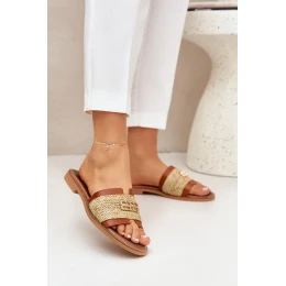 Kožené Pantofle S Dekorativním Detailem A Pletením Hnědé Zazoo 40426