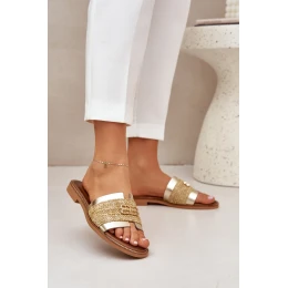 Kožené pantofle s ozdobným detailem a pletením Zazoo 40426 zlaté