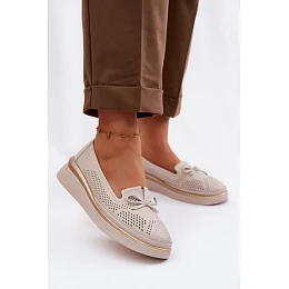 Kožené perforované polobotky na platformě LR61-7043 Béžové