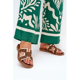 Kožené Ploché Klapky S Pantherou Zazoo 40383 Hnědé