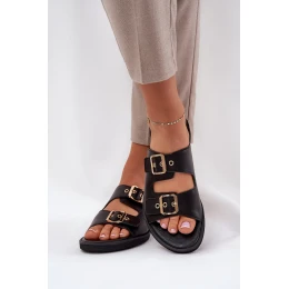 Kožené Ploché Pantofle S Přezkami Zazoo 3020 Černé