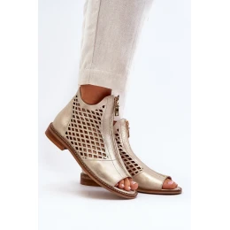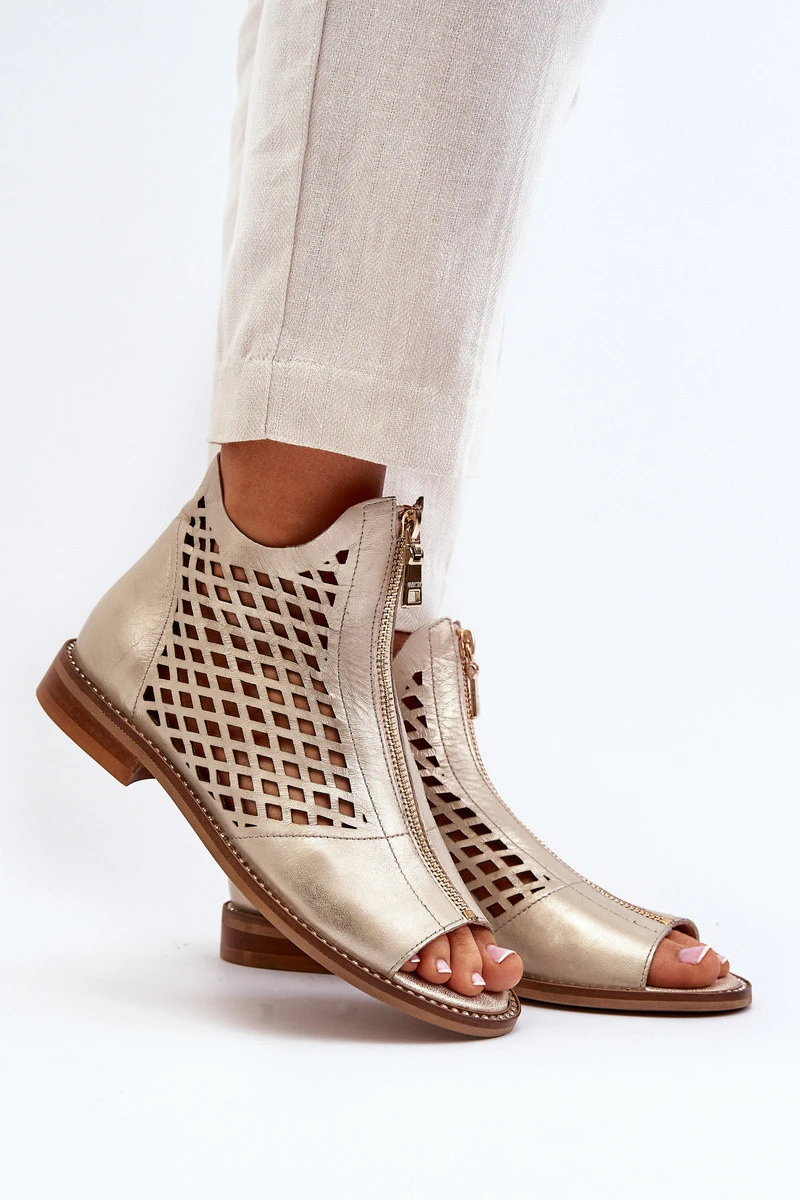 Kožené Prokreslené Sandály Na Zip Zlaté Zazoo 977/L