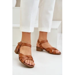 Kožené Sandály Na Jemném Podpatku Hnědé Zazoo 40372