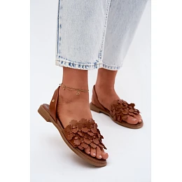 Kožené sandály na nízkém podpatku Zazoo 40468 Hnědé