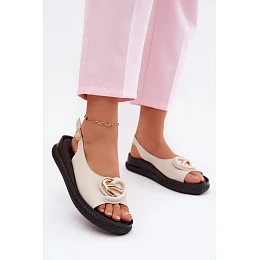 Kožené sandály na platformě s ozdobou S.Barski KV61-6047 Béžové