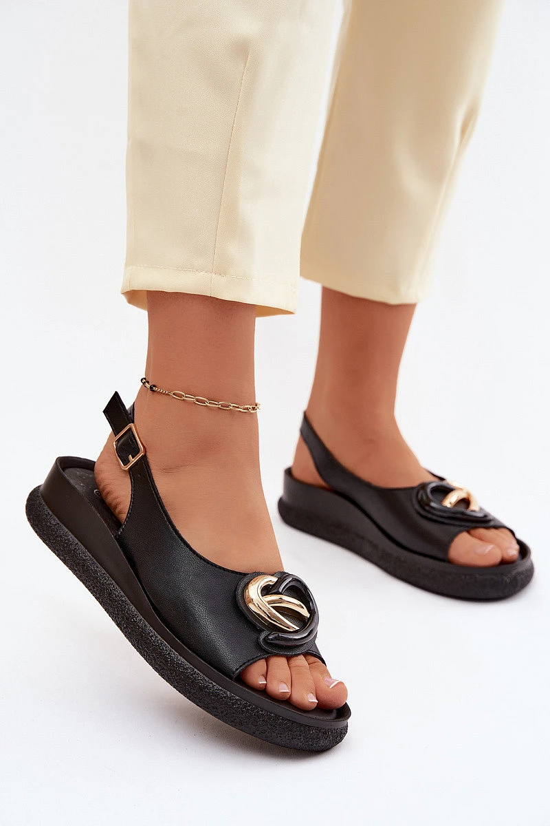 Kožené sandály na platformě s ozdobou S.Barski KV61-6047 Černé