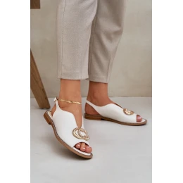 Kožené Sandály Na Plochém Podpatku S Dekorací Světle Béžové Laura Messi 2865