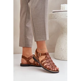 Kožené sandály na plochém podpatku Zazoo 3686 Camel