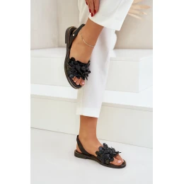 Kožené Sandály Na Plochém Podpatku Zazoo 40425 Černé