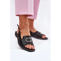 Kožené Sandály S Dekorací Na Plochém Podpatku S.Barski KV51-096 Černé