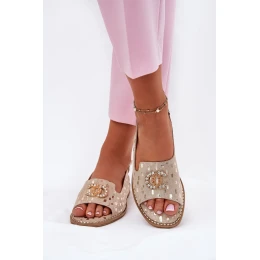 Kožené Sandály S Dekorací Na Plochém Podpatku S.Barski KV51-096 Zlaté