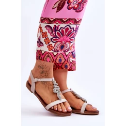 Kožené sandály s ozdobným hadem S.Barski KV-5541-42 Béžový