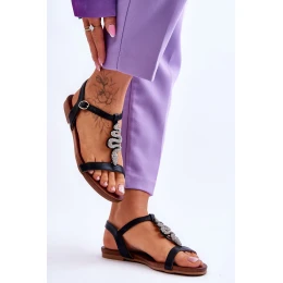 Kožené sandály s ozdobným hadem S.Barski KV-5541-42 Černá