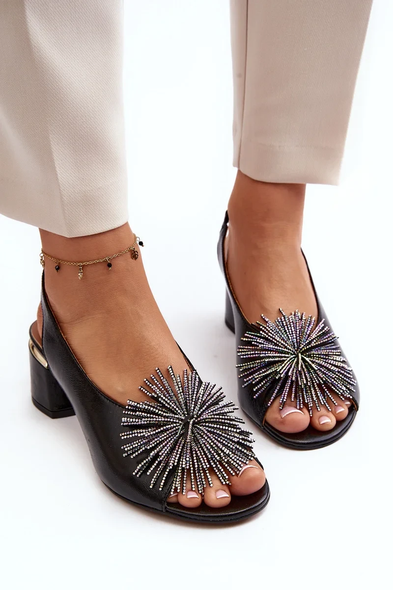 Kožené sandály s ozdobou Laura Messi 2719 Black