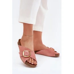 Kožené sandály se zlatou sponou Maciejka 07000-15 Růžové