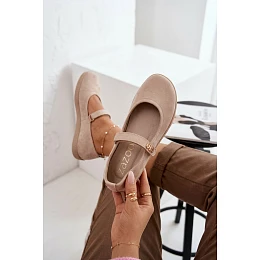 Kožené semišové baleríny Barefoot s páskem Zazoo 10206 béžové