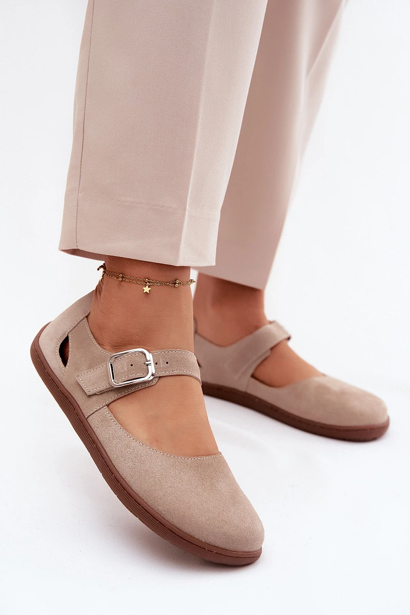 Kožené semišové baleríny Barefoot s páskem Zazoo N1319 béžové