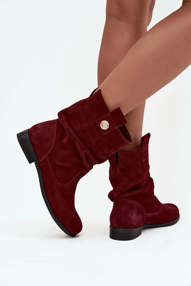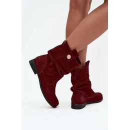 Kožené semišové dámské boty s řasením zateplené Zazoo 4210 bordó
