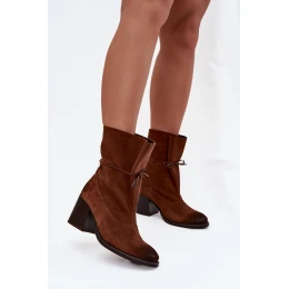 Kožené semišové dámské kotníkové boty na jehlovém podpatku Zazoo 1151 hnědé