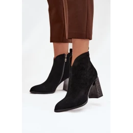 Kožené semišové dámské kotníkové boty na podpatku s vyhříváním Černé Zivella