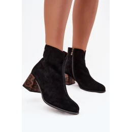 Kožené semišové dámské kotníky na podpatku Maciejka K7202-01 Černé