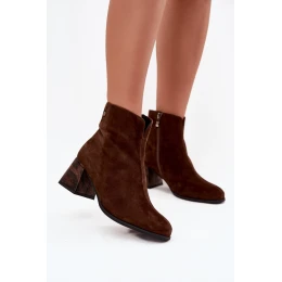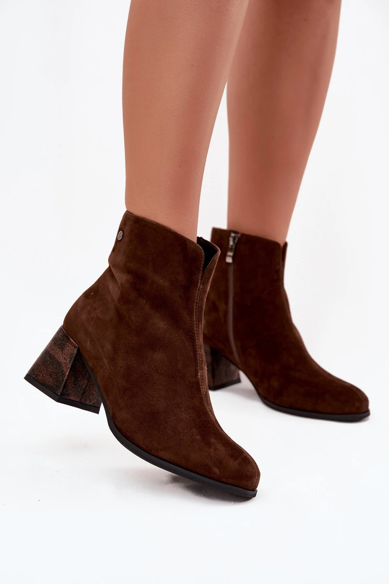 Kožené semišové dámské kotníky na podpatku Maciejka K7202-02 čokoládové