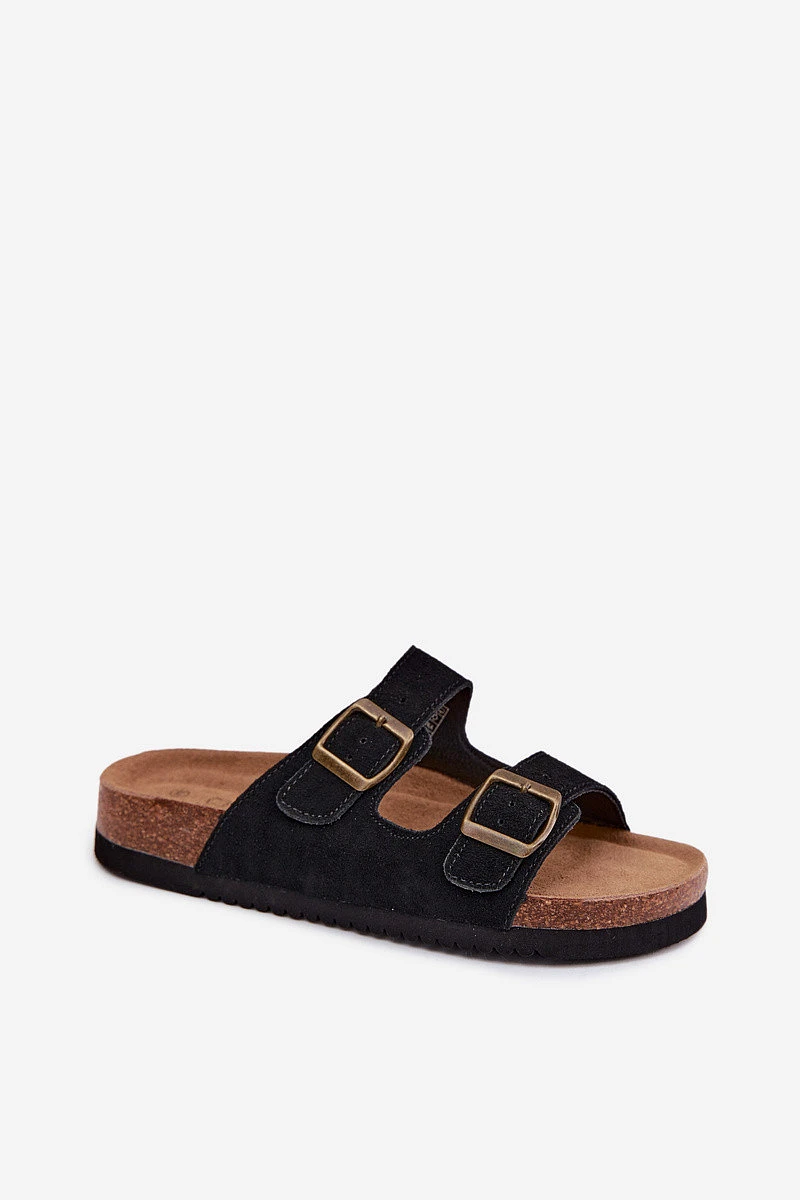 Kožené semišové dámské pantofle s přezkami černé Rosaliae