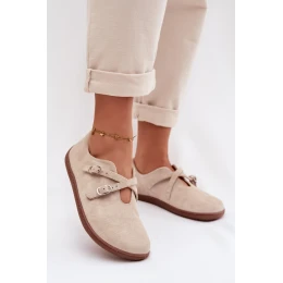 Kožené semišové dámské polobotky Zazoo N1271 světle béžové