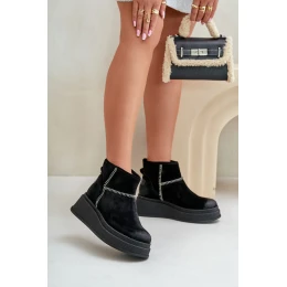 Kožené Semišové Sněhule Boty Na Platformě A Podpatku Hnědé Maciejka 06769-01 Černé