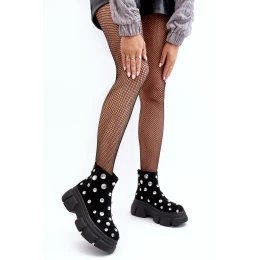 Kožené semišové zateplené kotníčková obuv s krystaly D A MR52-205 Černé Botki Damskie
