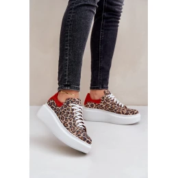 Kožené sneakerky na platformě s leopardím vzorem Zazoo 3346 hnědo-červené